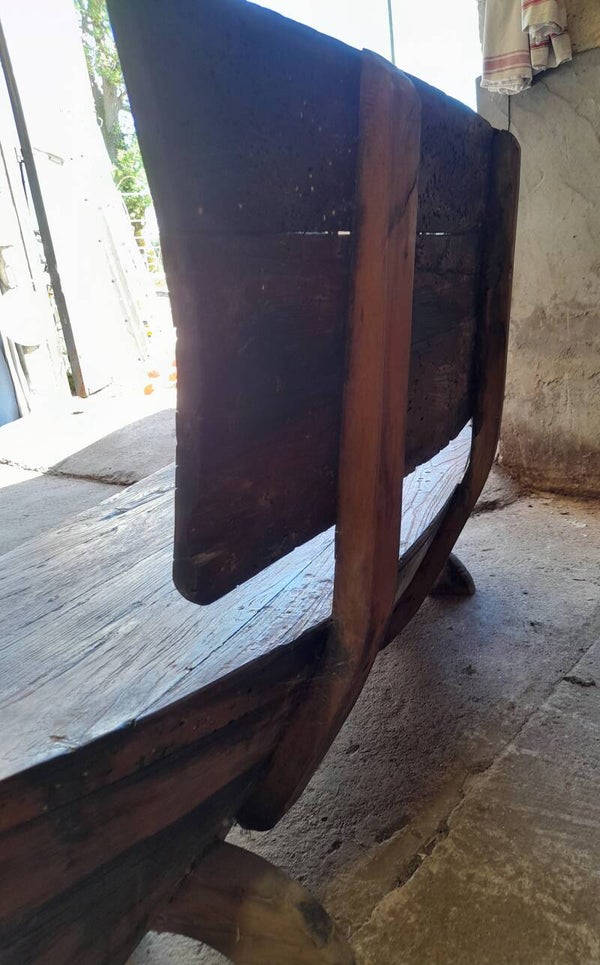 📏 Dimensions : Hauteur 46 cm pour l'assise et 95 cm au total, longueur 2m25 et largeur 60 cm au plus large.