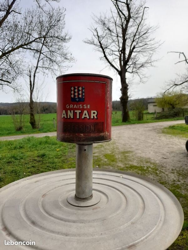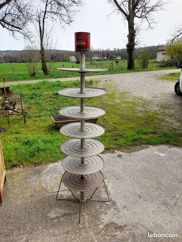 Il est en bon état, propre, démontable, composé de 7 plateaux tournants, surmonté d'un ancien pot à graisse ANTAR.