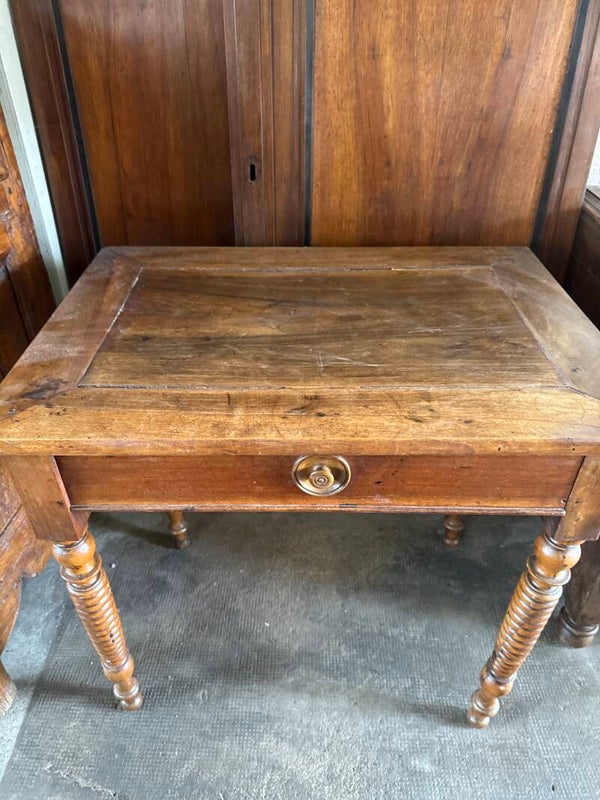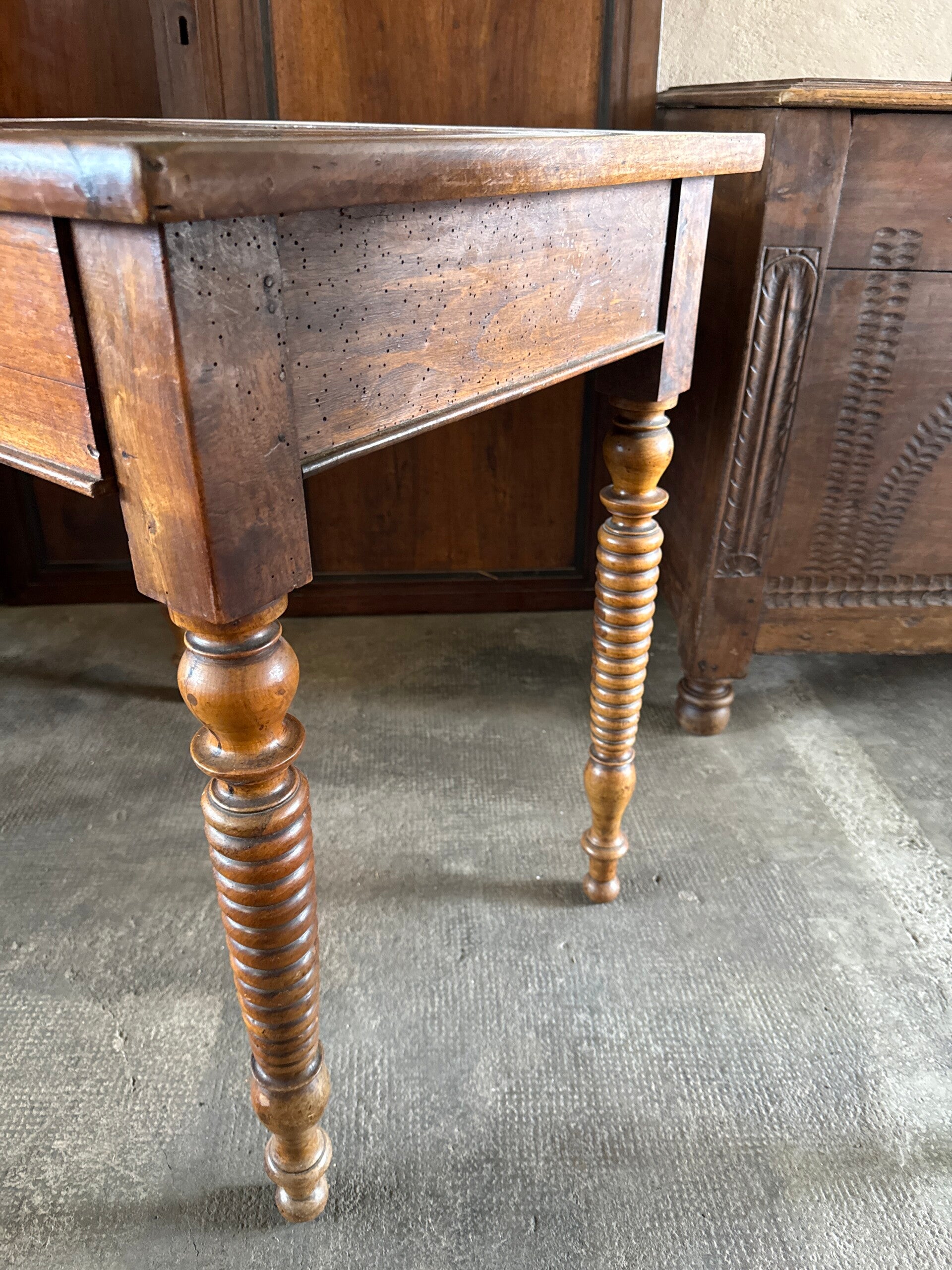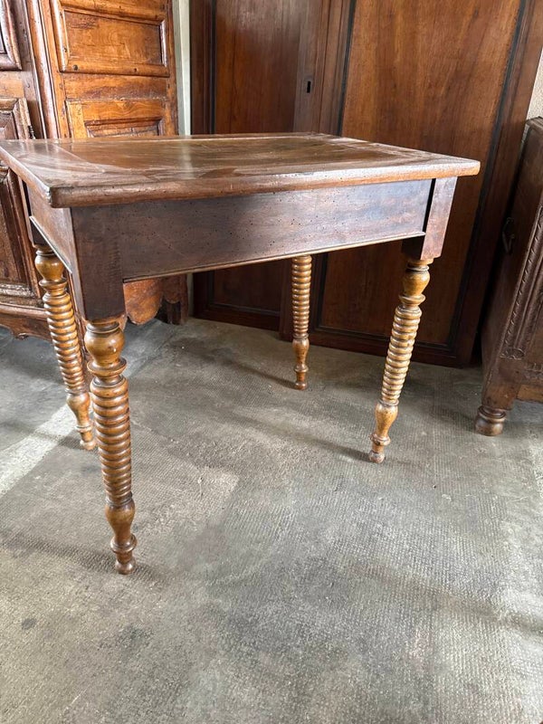 Charmant ancien bureau du 19ième en noyer avec un tiroir central en ceinture, provenant d’un château.