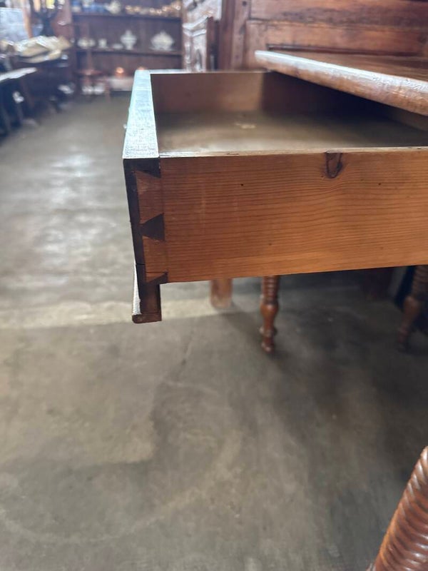 Son plateau patiné et ses pieds tournés lui confèrent un charme authentique et rustique. Vous pouvez l’utiliser comme bureau, console ou table d’appoint.