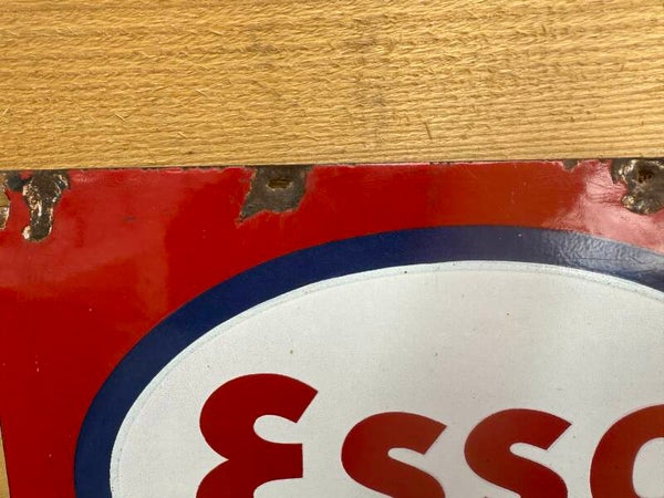Superbe plaque émaillée publicitaire ESSO « Elephant Kerosene », grand format 30 × 61 cm, datant des années 1930-1950.