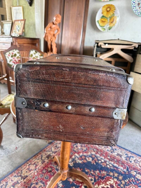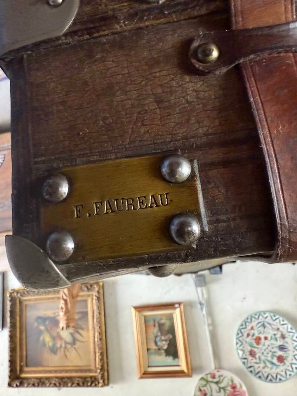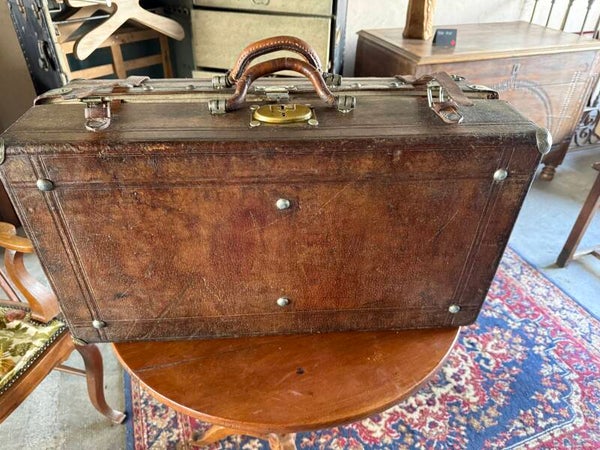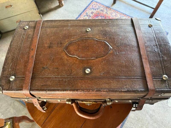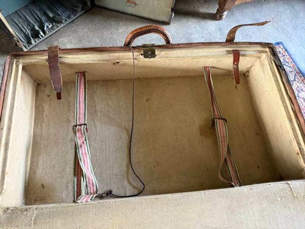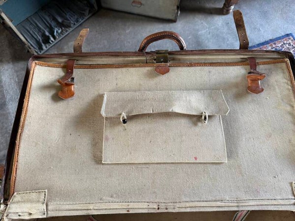Patine authentique, cuir craquelé par endroits, poignées et sangles en place. Ensemble homogène et décoratif.