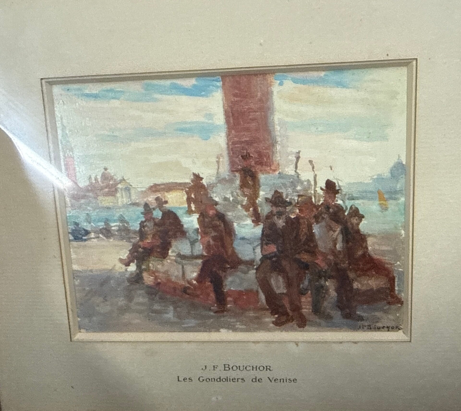 Œuvre originale du peintre français Jean-Félix Bouchor, représentant une scène animée de gondoliers sur la lagune vénitienne. La composition, vivante et lumineuse, restitue avec sensibilité l’atmosphère de Venise, thème emblématique chez l’artiste.